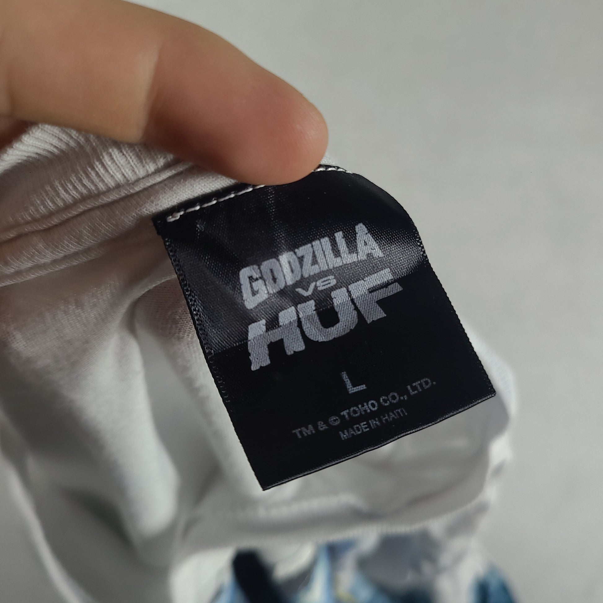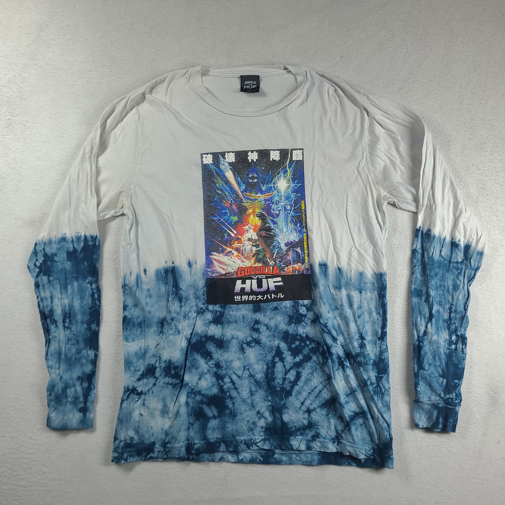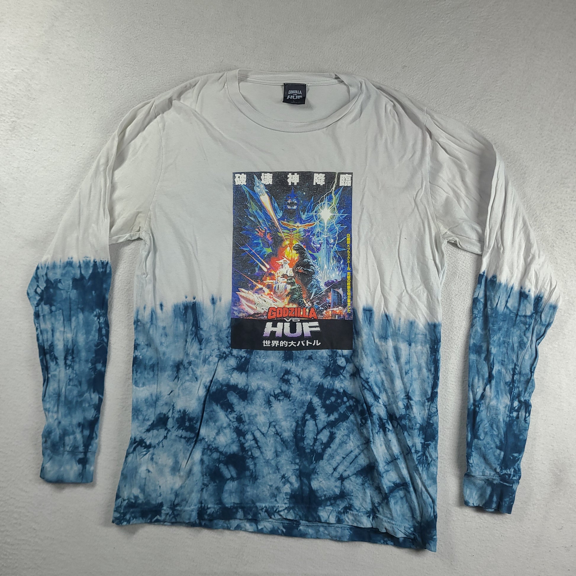 Godzilla x Huf Shirt Long Sleeve White Blue Graphic Tee Size L Cotton Adult