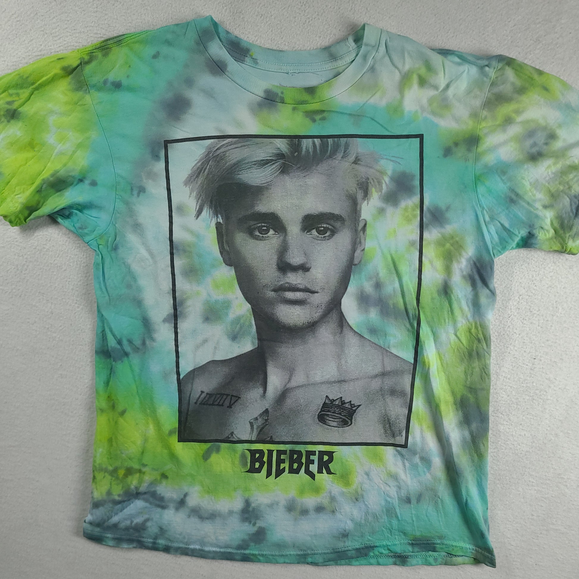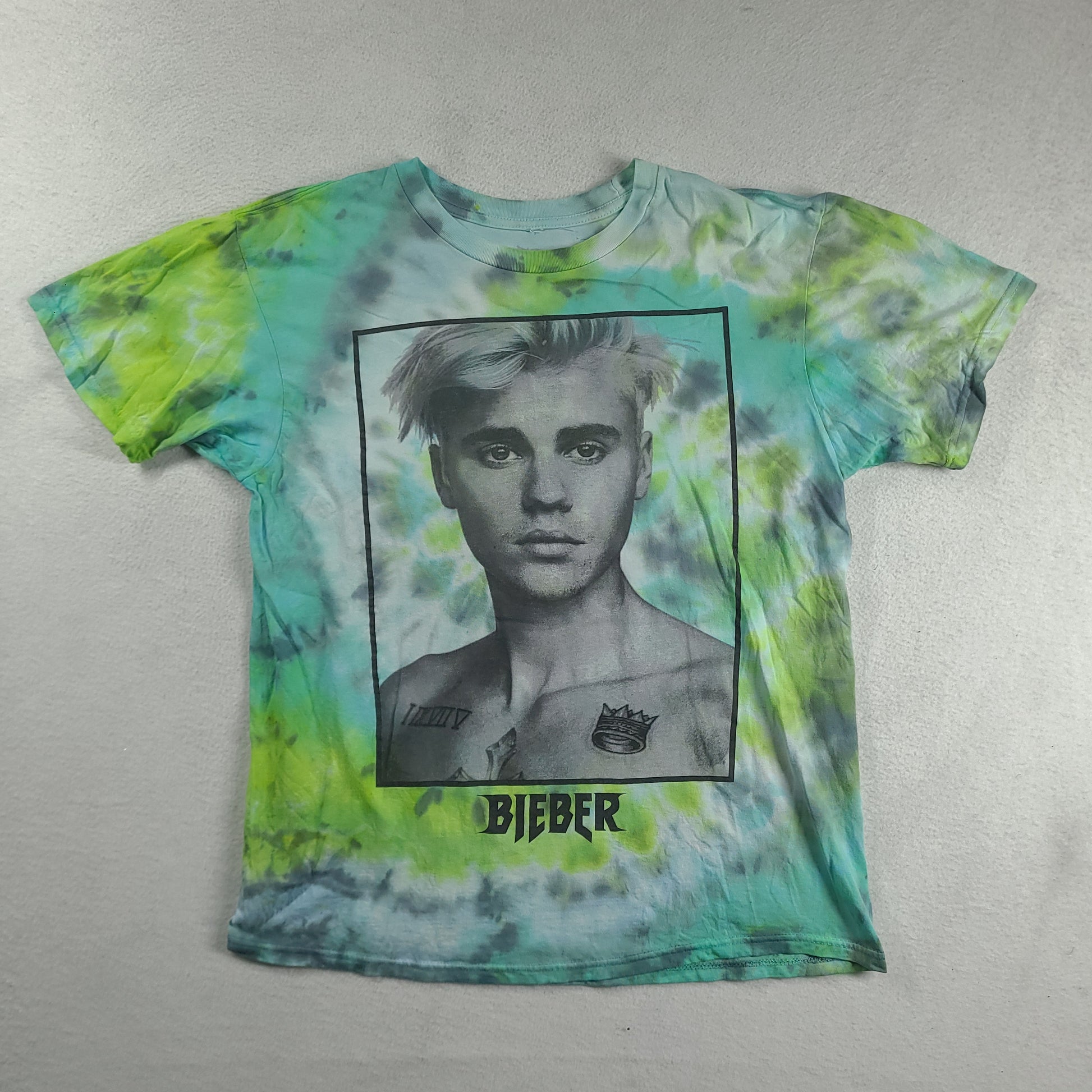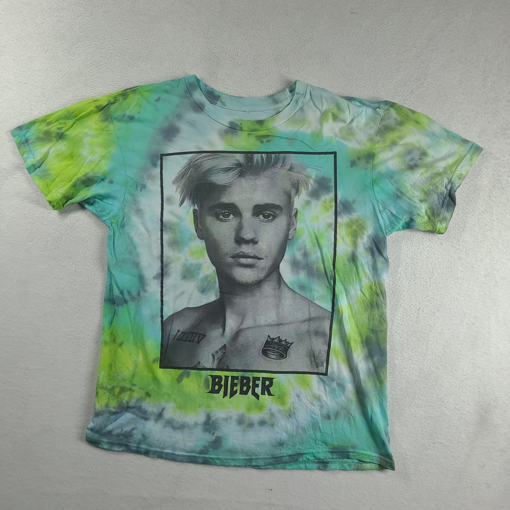 Justin Bieber Shirt Green Size L Tie Dye Short Sleeve Graphic Tee