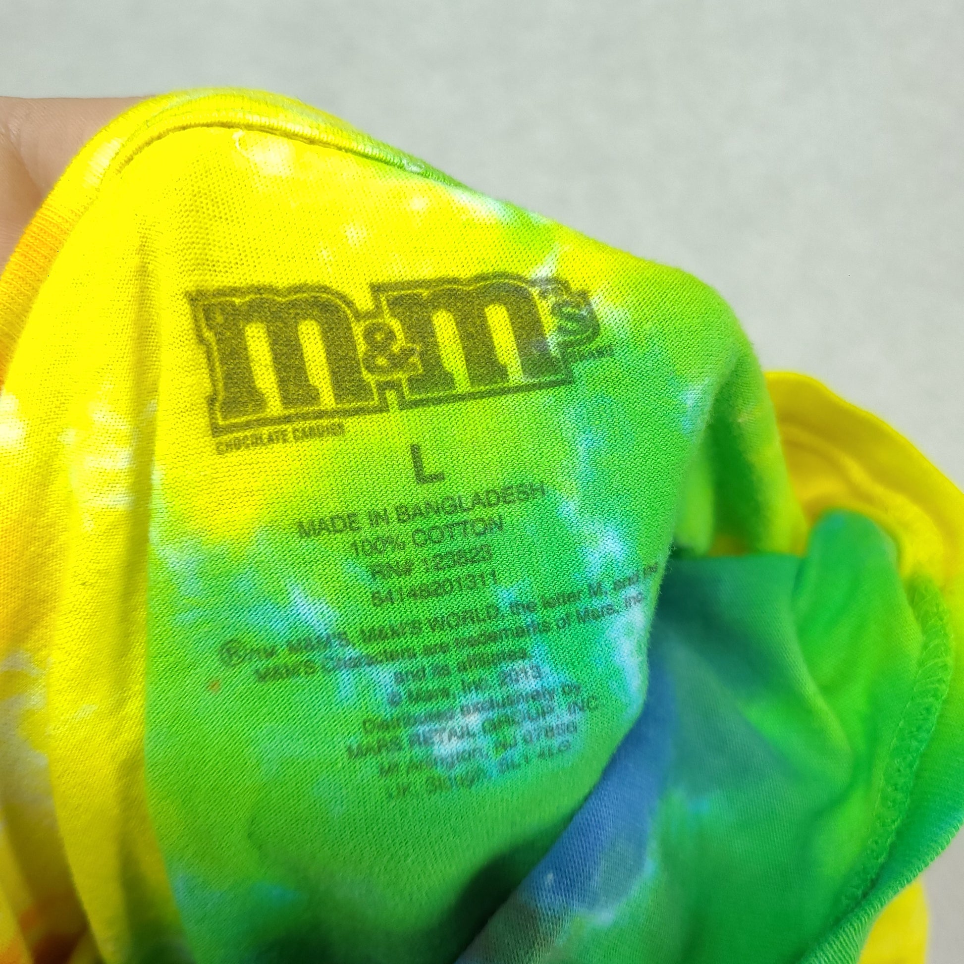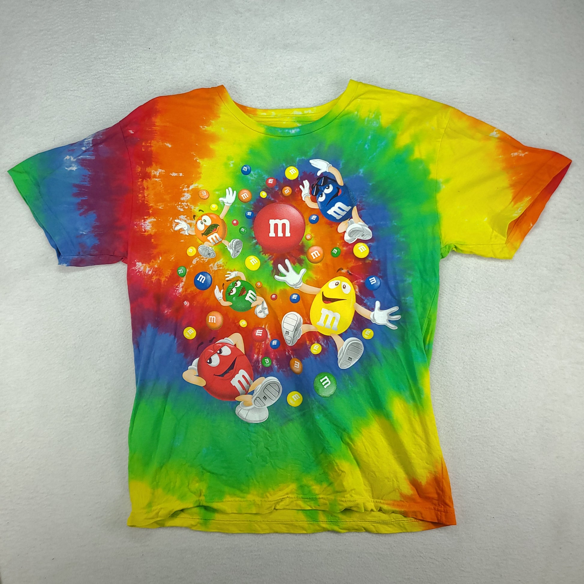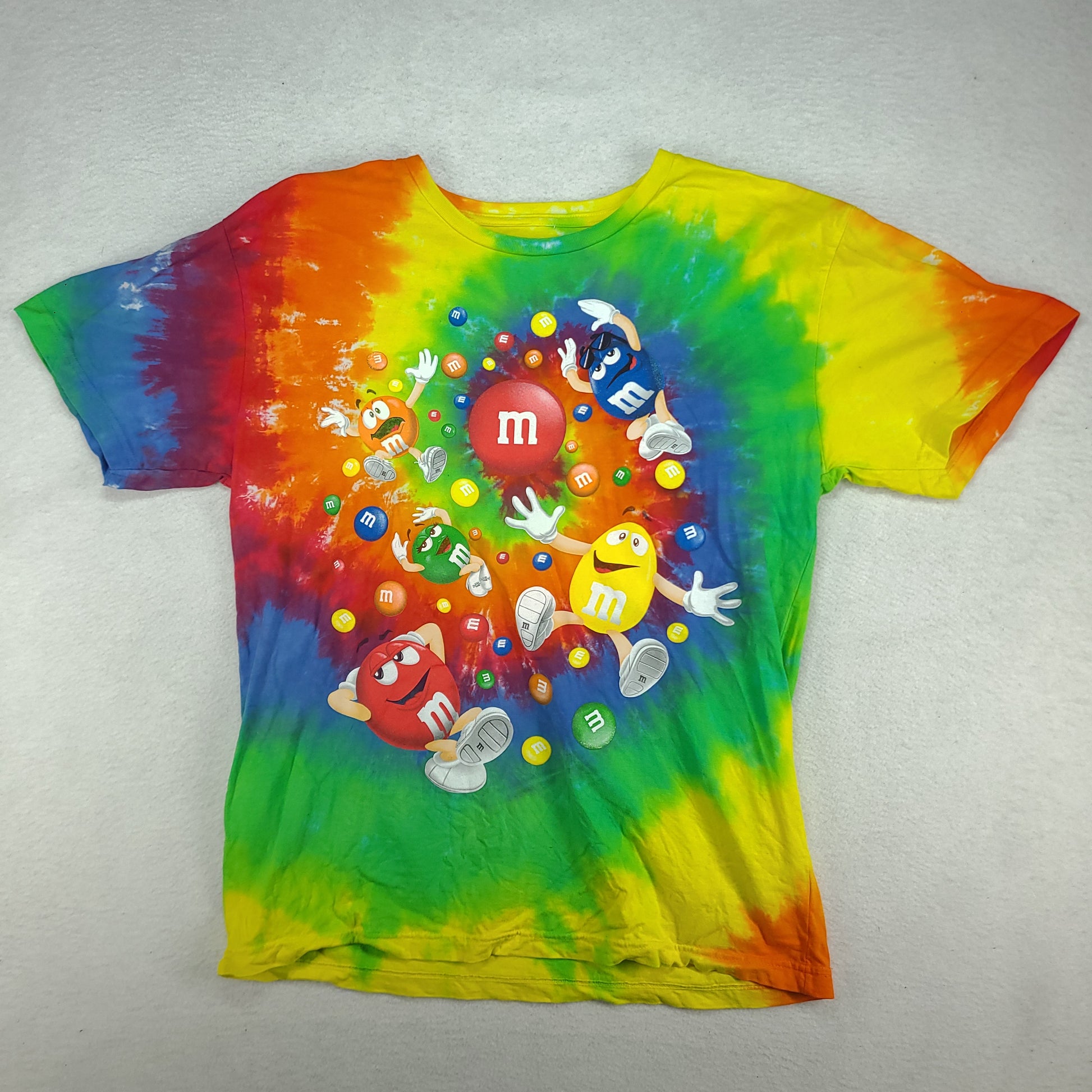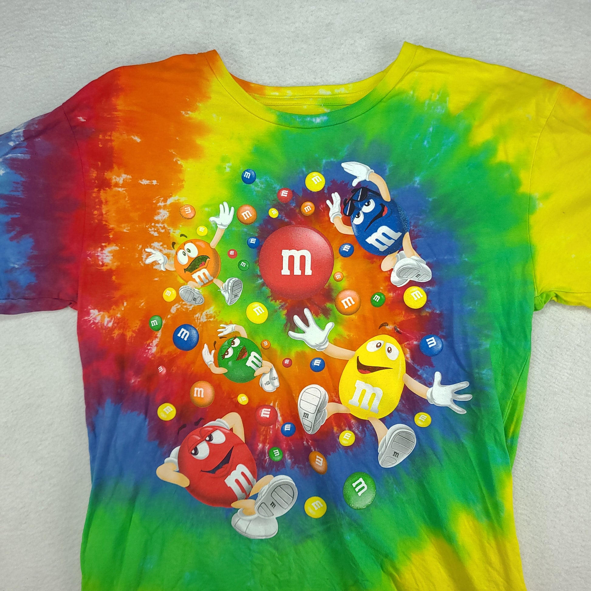 M&Ms Shirt Tie Dye Chocolate Short Sleeve Graphic Tee Size L Yellow Green Blue