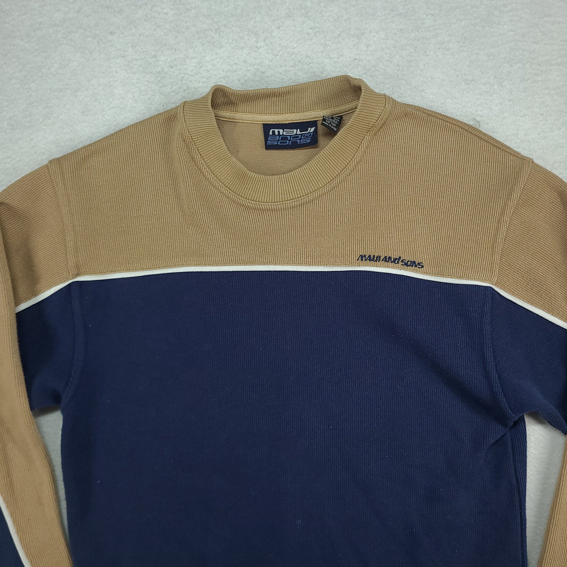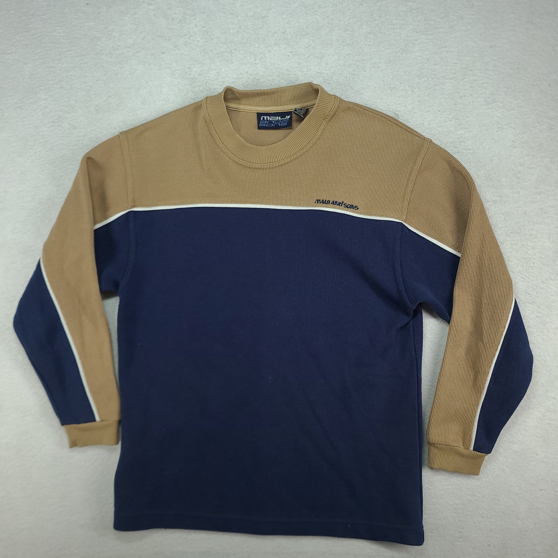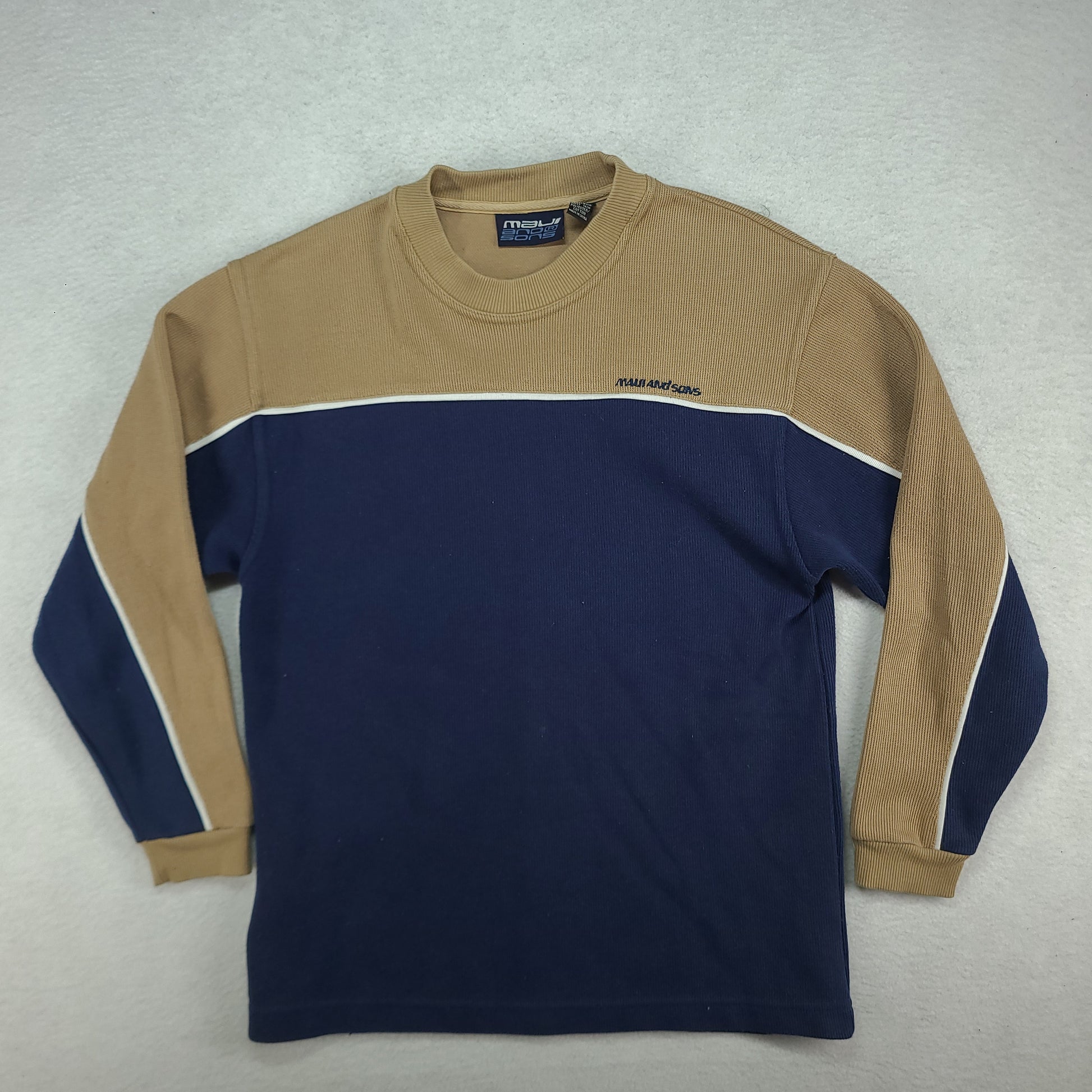 Maui and Sons Sweater Size 12 Pullover Beige Blue Y2K Surf Youth or Womens