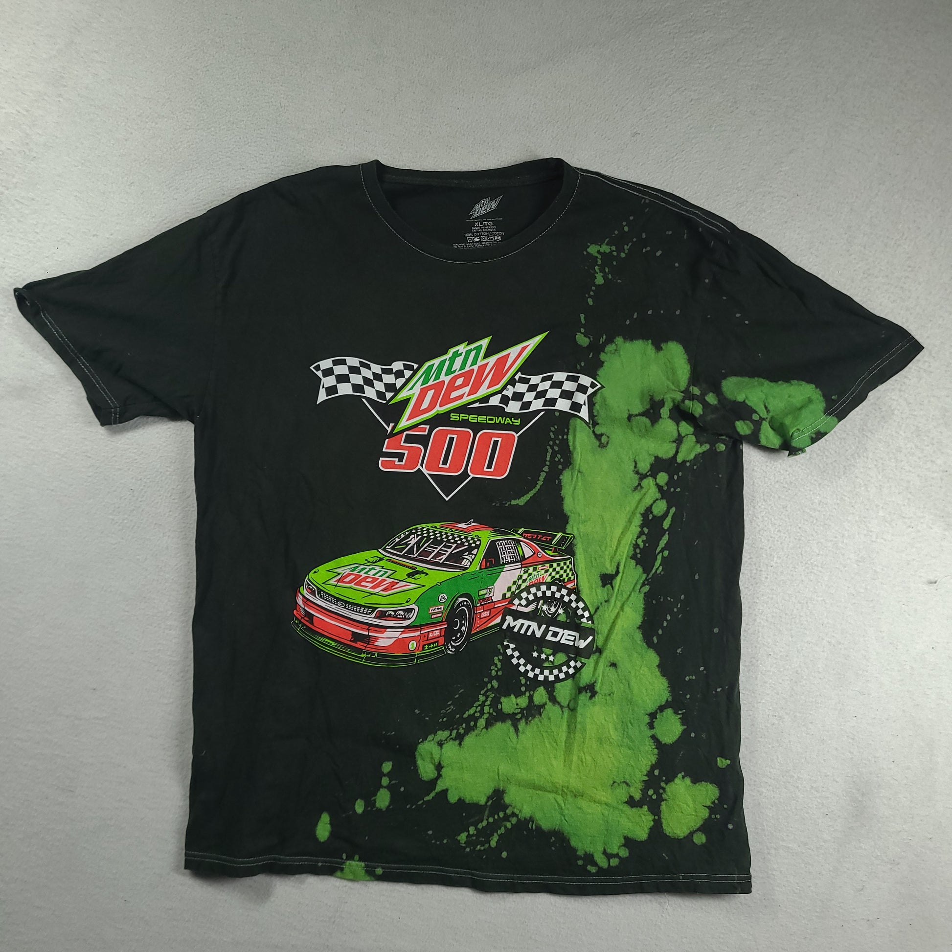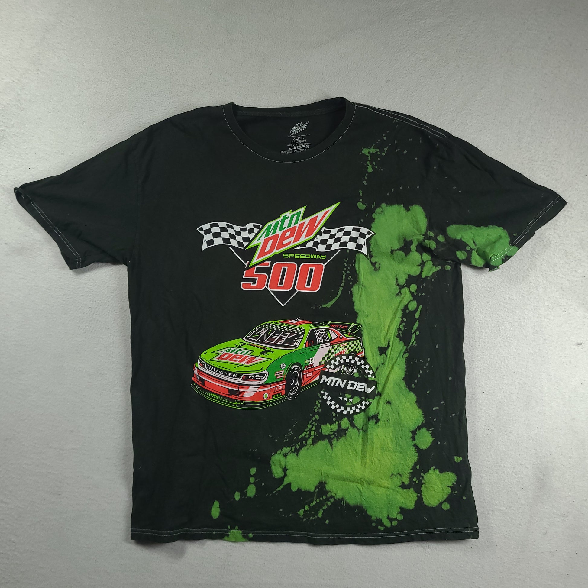 Mountain Dew Shirt Green Speedway 500 Size XL Spellout Cotton Graphic Tee