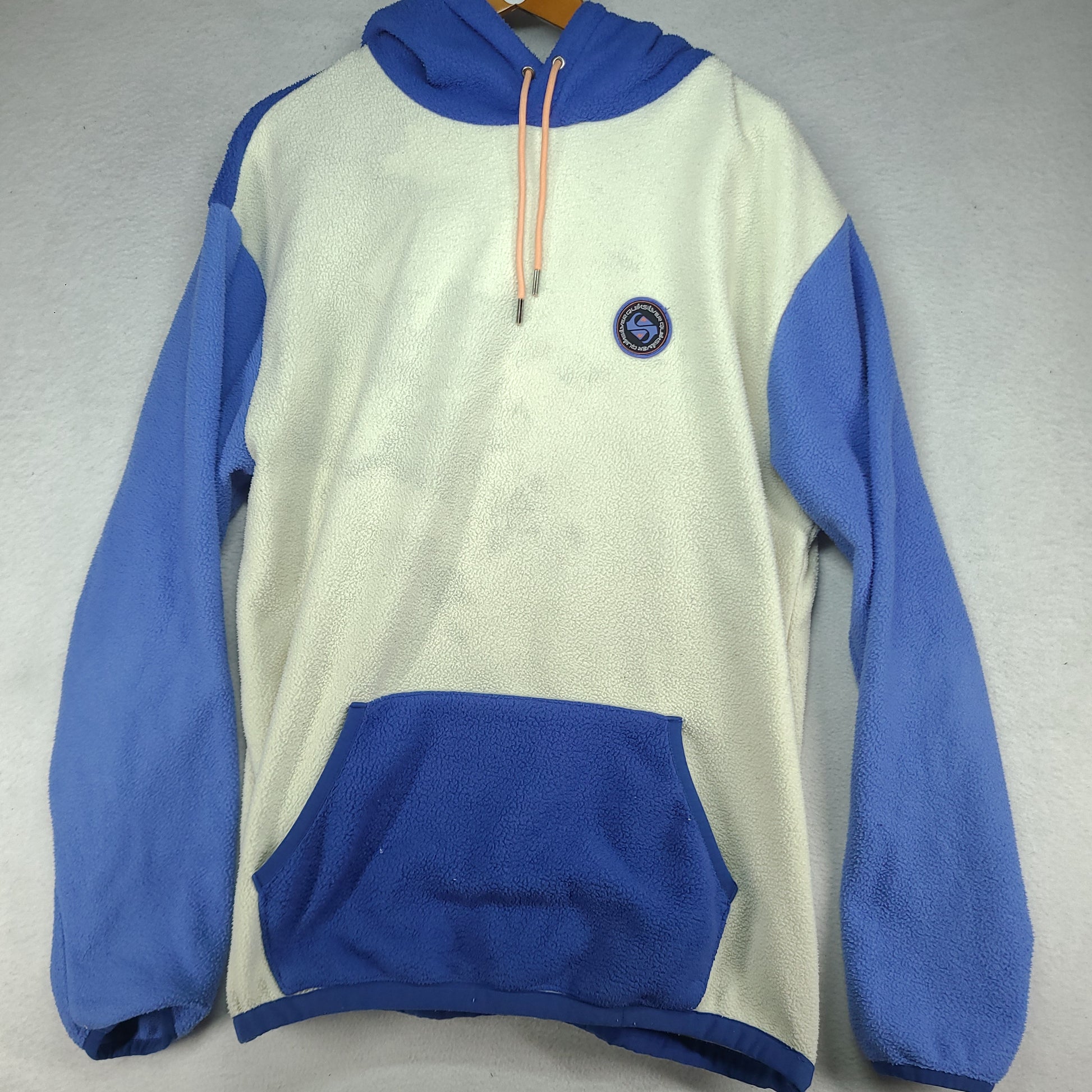 Quiksilver Hoodie Jumper Size 2XL Blue White Fleece Pullover Adult