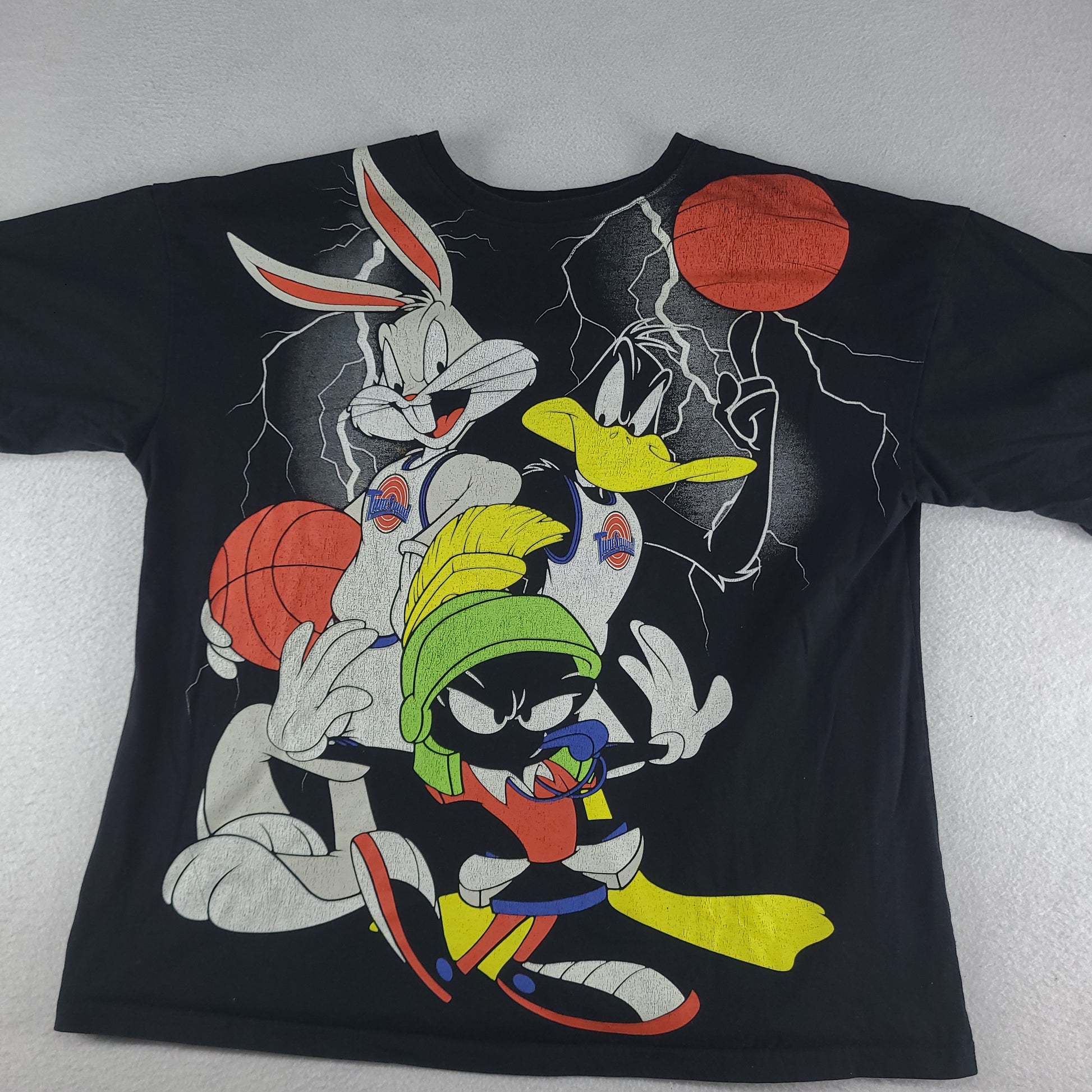 Space Jam Shirt Black ReCommerce Size M / L Adult Short Sleeve Graphic Tee AOP