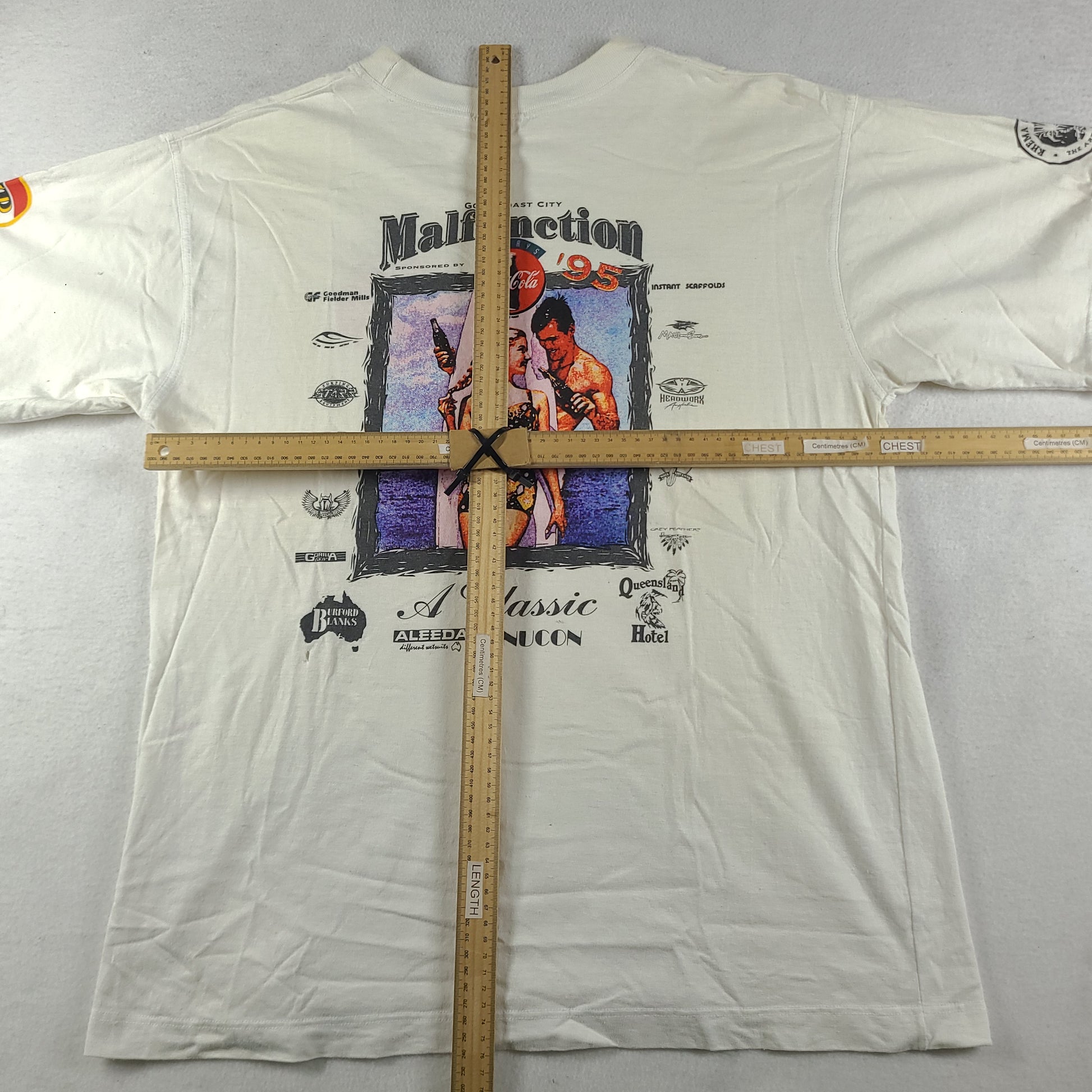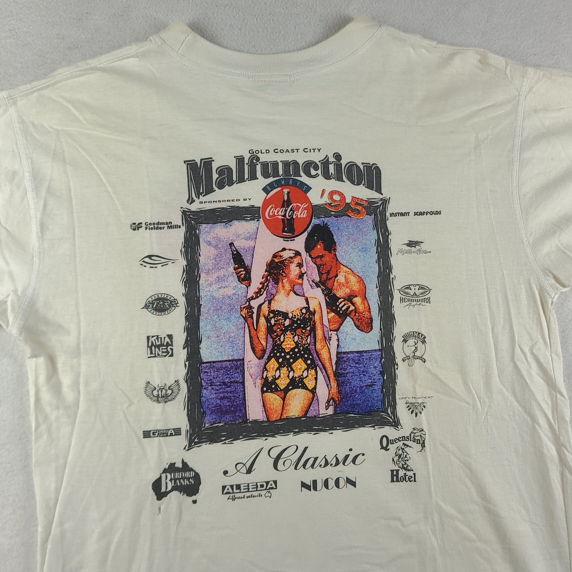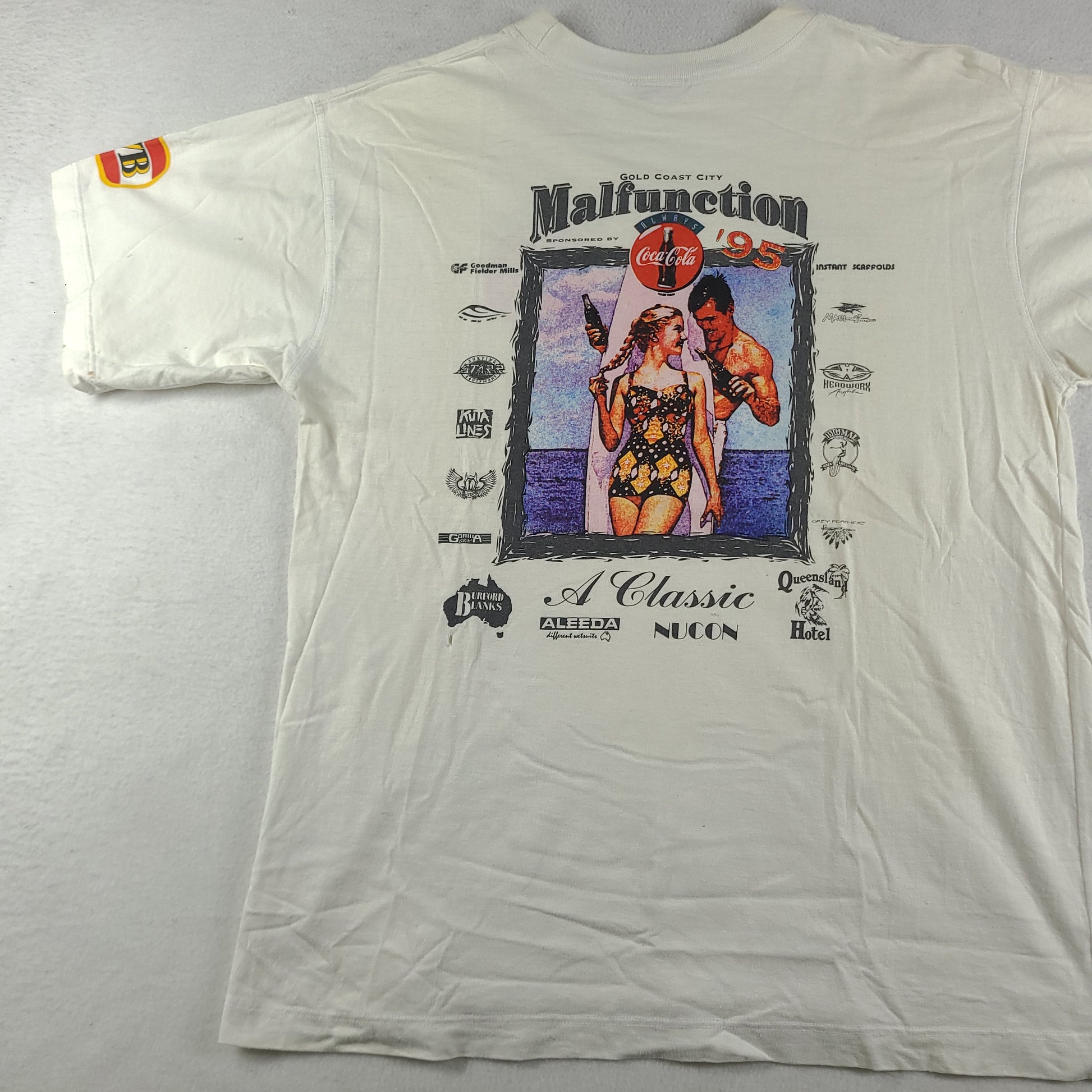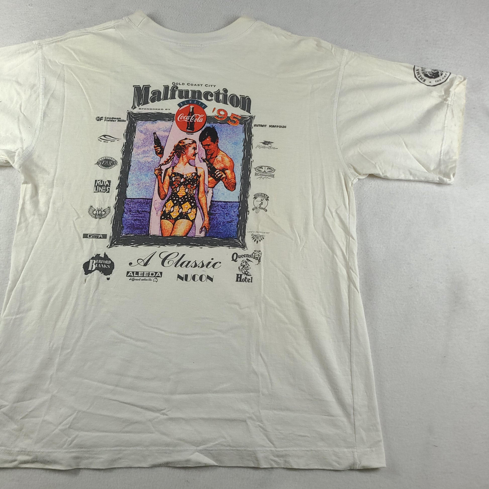 Vintage 1995 Malfunction Shirt Size L White Australian Surf Competition Gold Coast