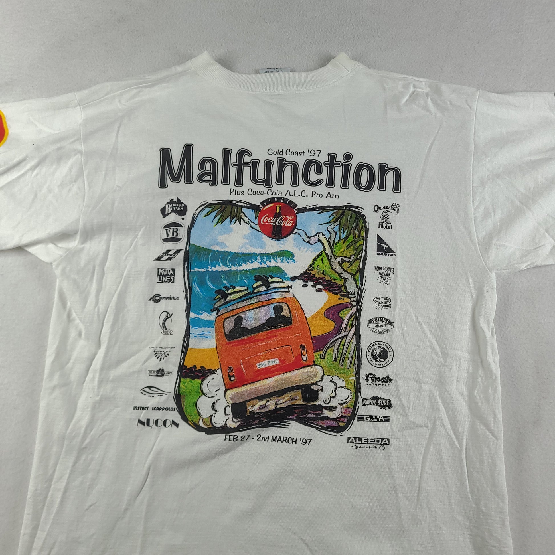 Vintage 1997 Malfunction Shirt Gold Coast Surf Competition Size L White Adult