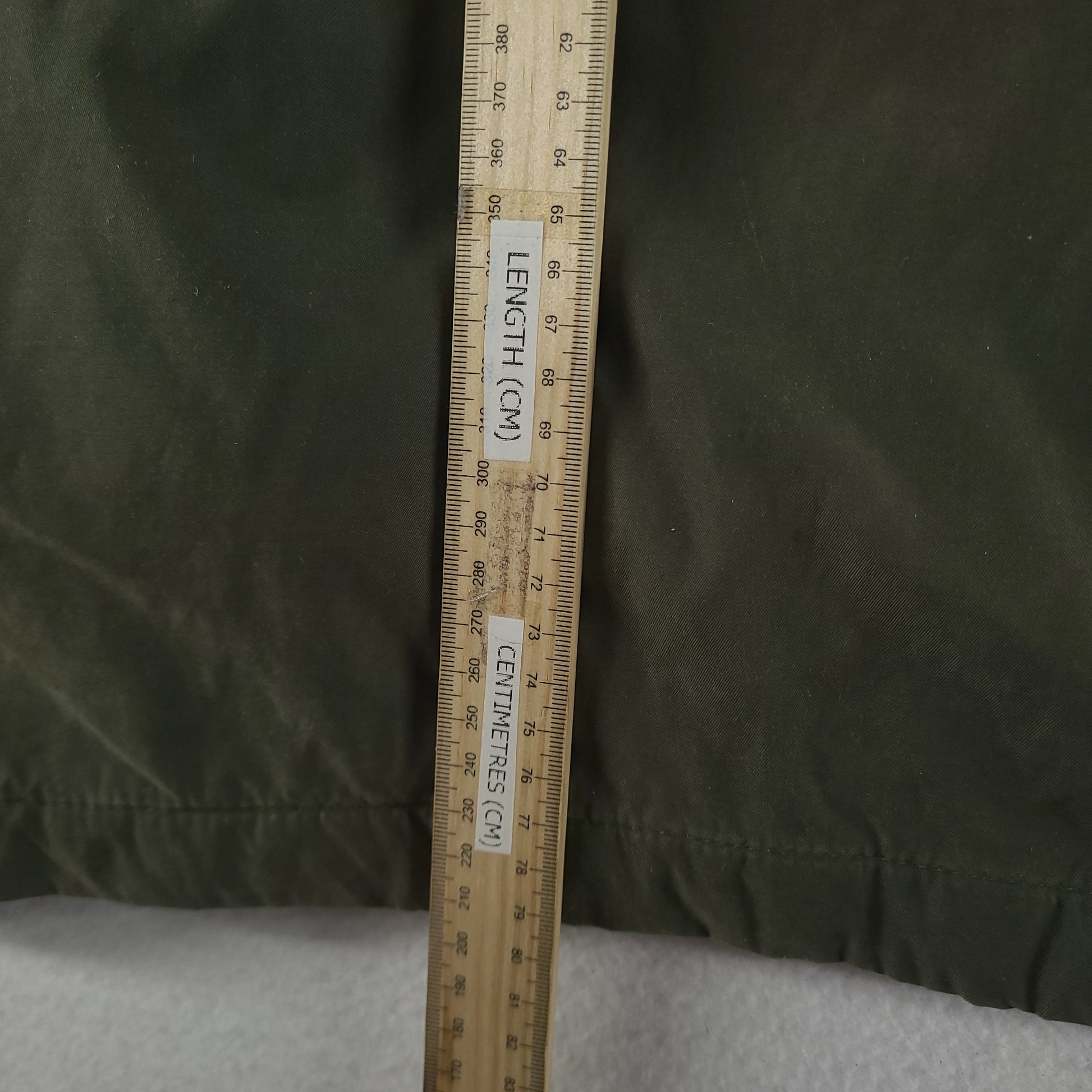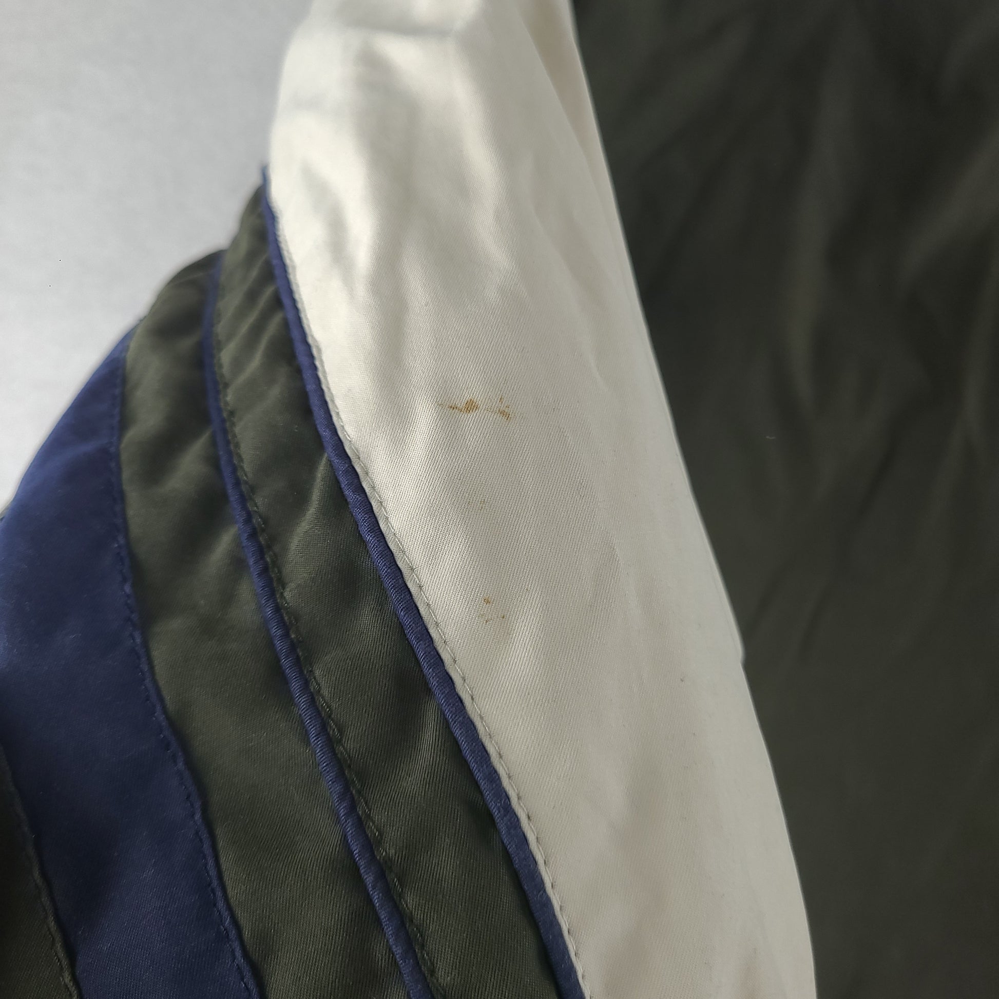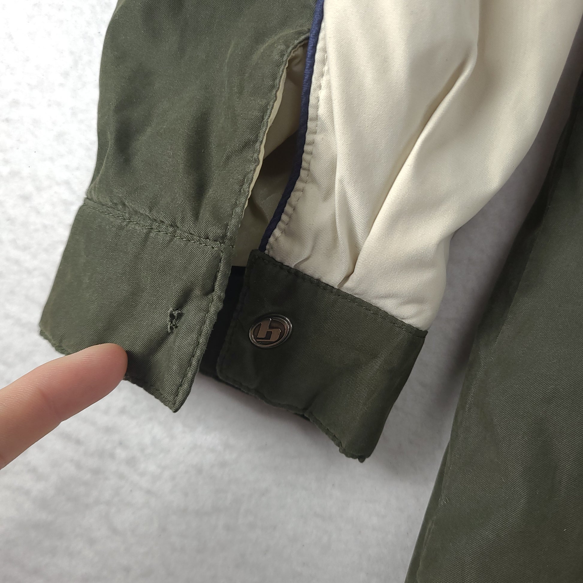 Please note, MISSING one snap button on the sleeve. The item pictured is in preowned condition with any flaws as pictured. Measurements included in the photos. Please review condition and measurements before purchase.