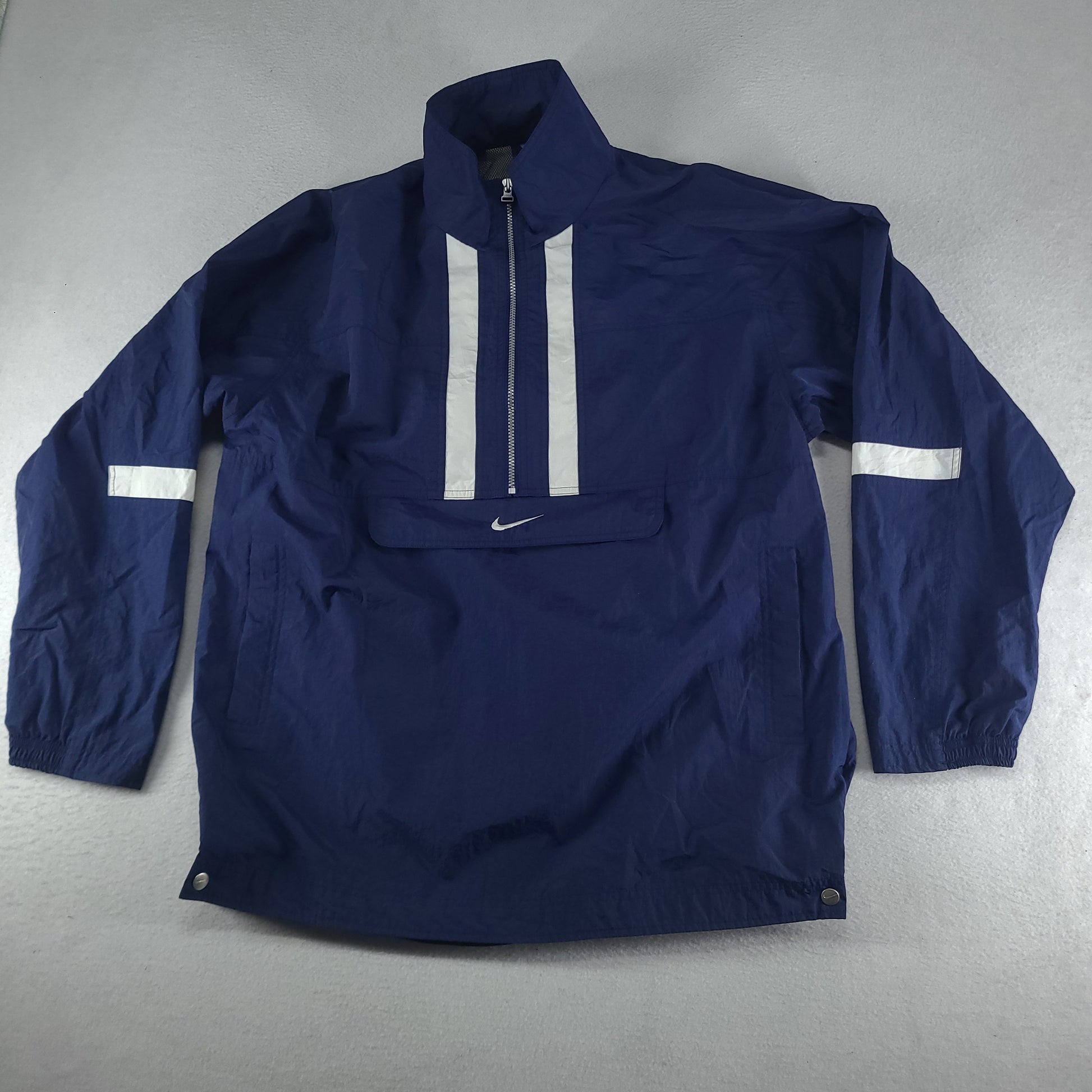 Vintage Nike Windbreaker Jacket Blue Zip Pockets Adult Size L Made in Thailand