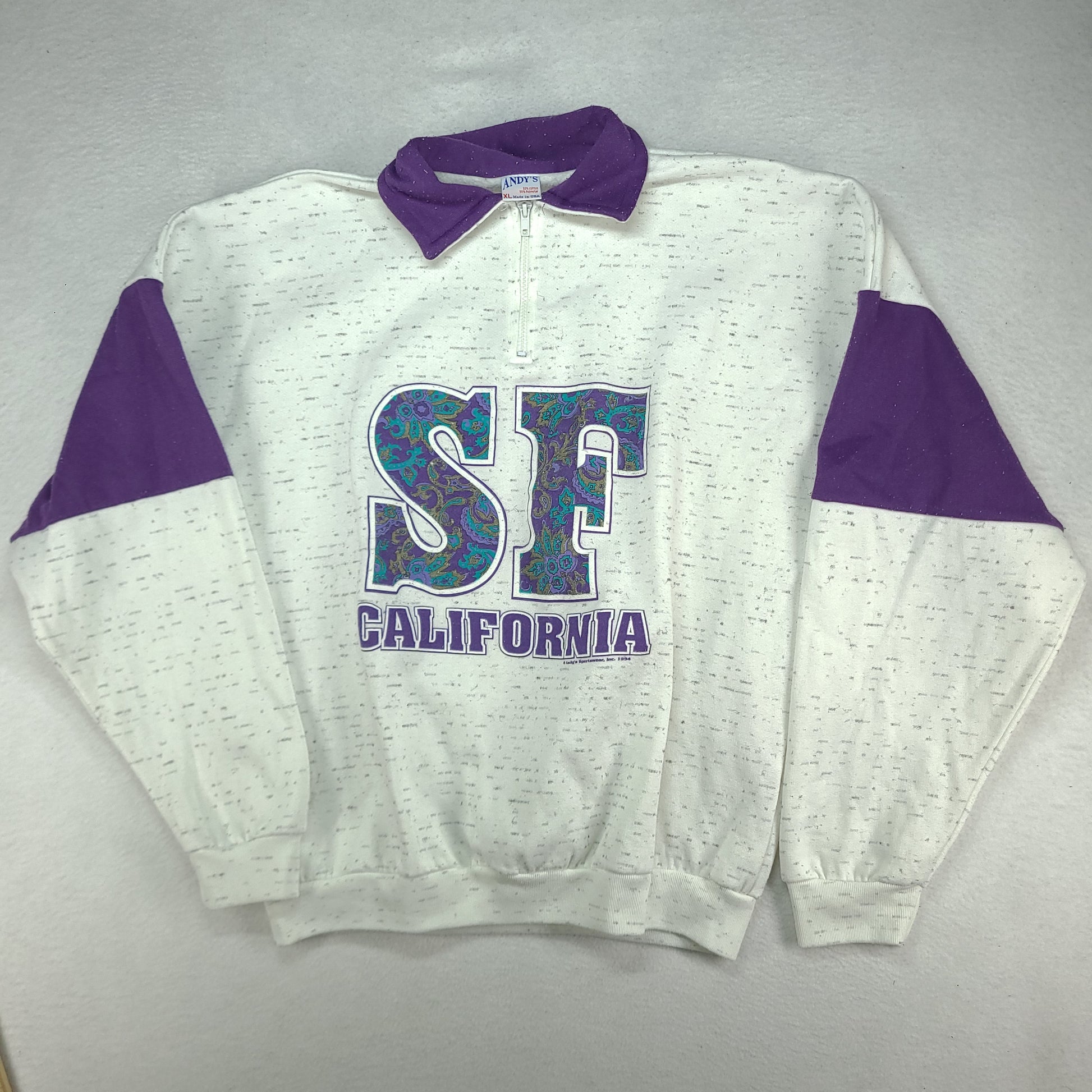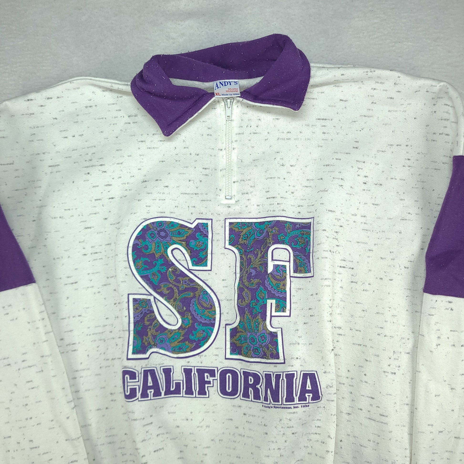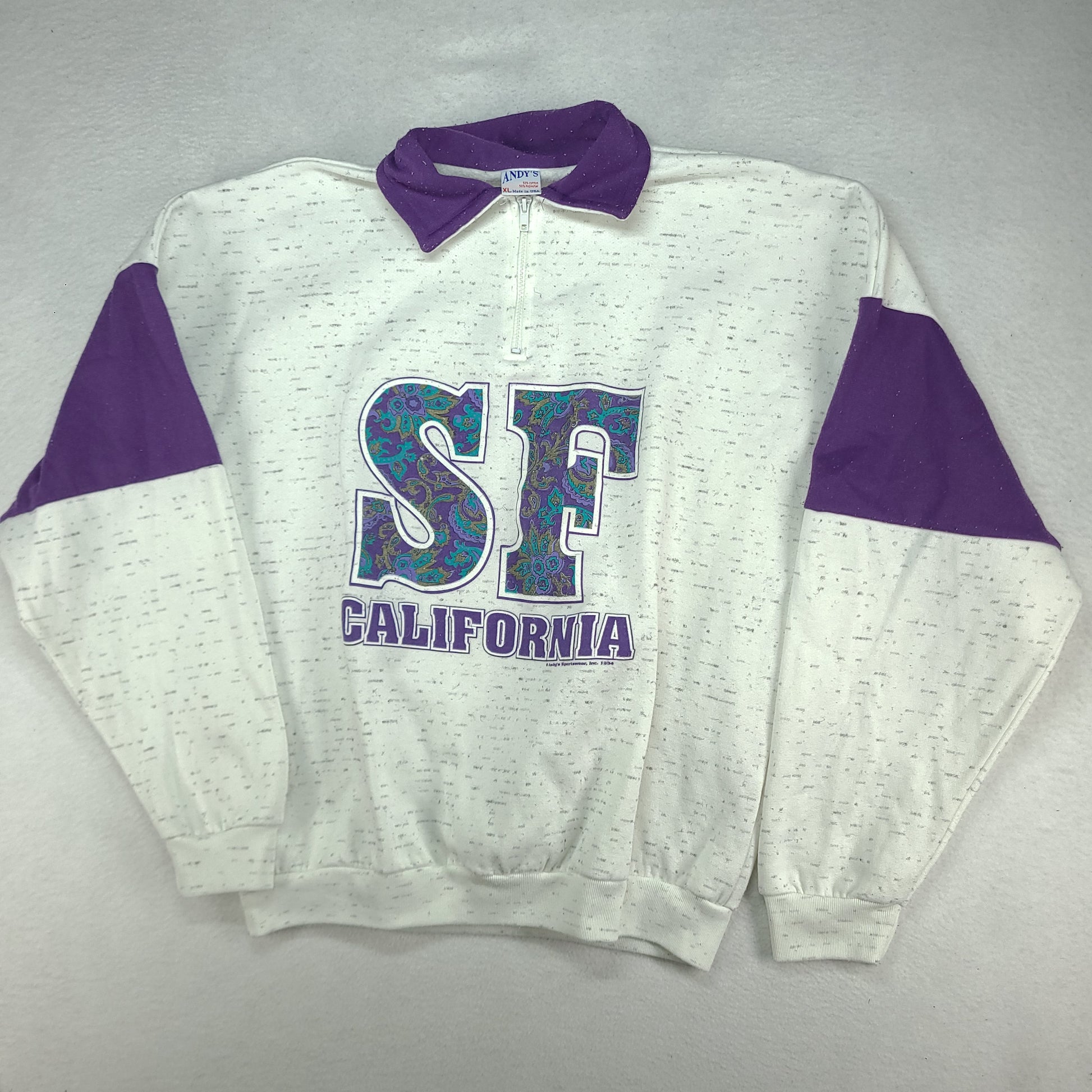 Vintage SF California Jumper Pullover White Made in USA XL Andys Polyester Cotton